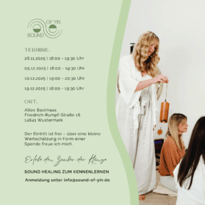 Neues Angebot im Alten Backhaus In einer wohltuenden Klangreise mit tibetischen Klangschalen und therapeutischen Instrumenten wirst du in die Entspannung […]