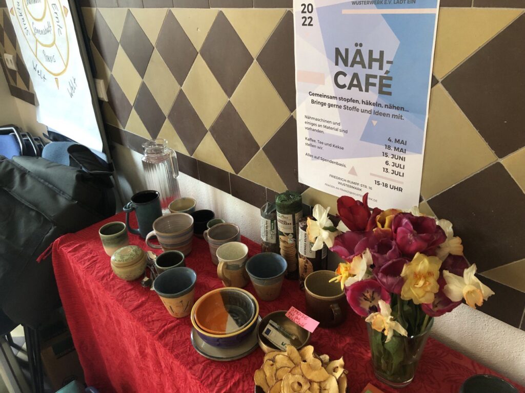 Im Alten Backhaus öffnen wir einmal im Monat mittwochs von 15–18 Uhr die Türen für gemeinsames Nähen, Reparieren, Stricken, Häkeln oder Stopfen.
